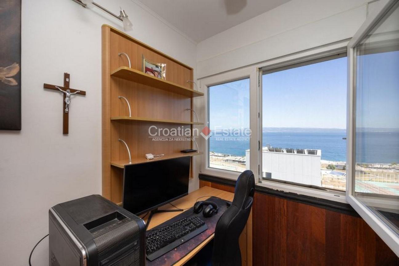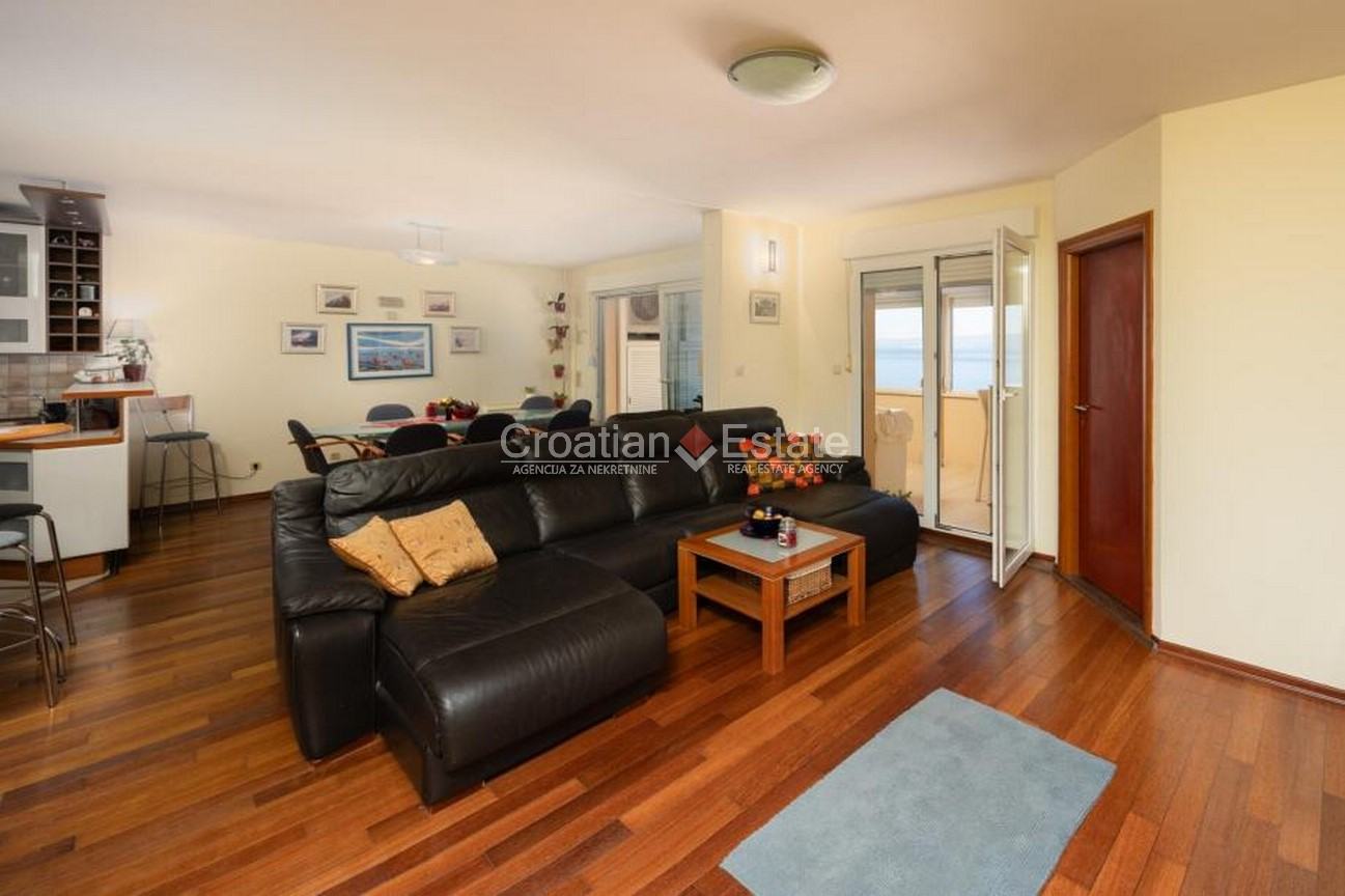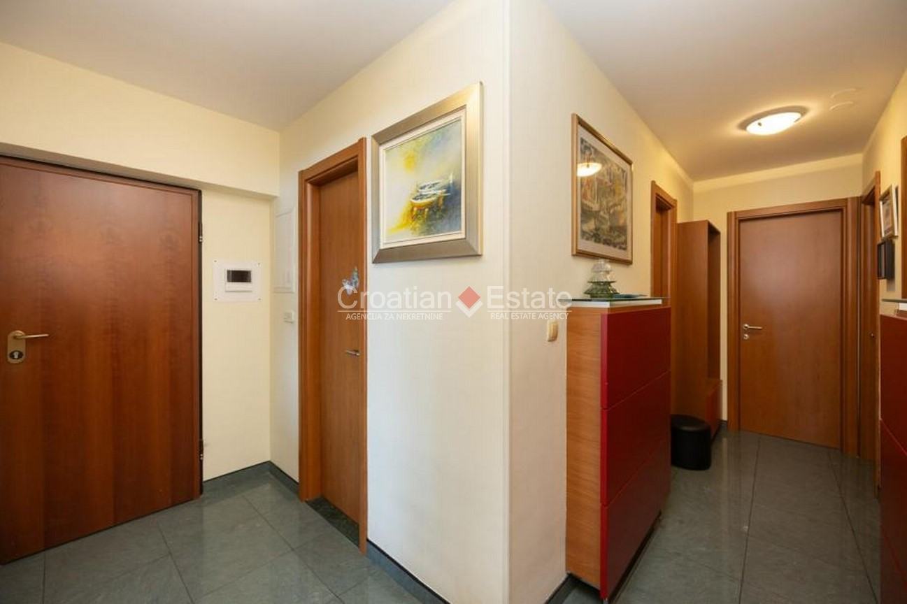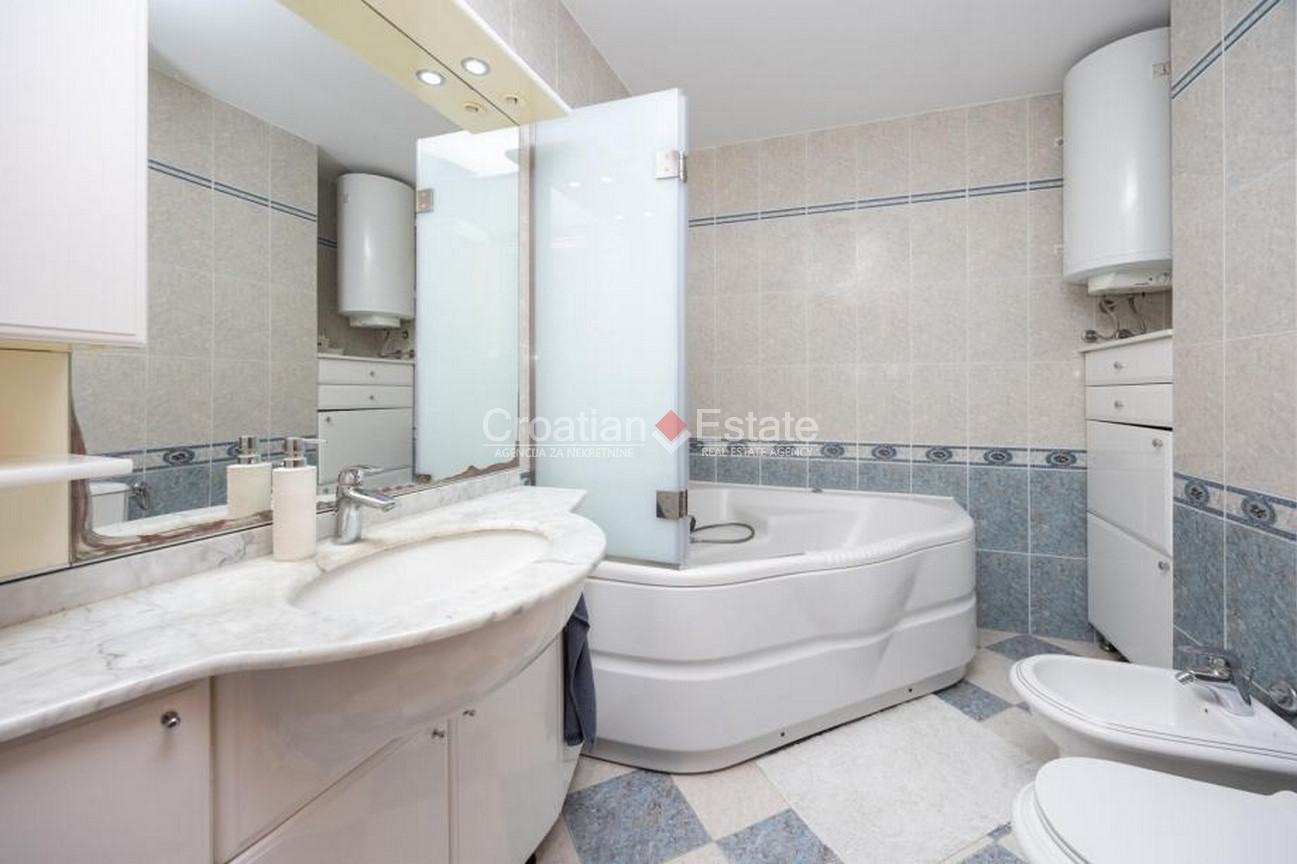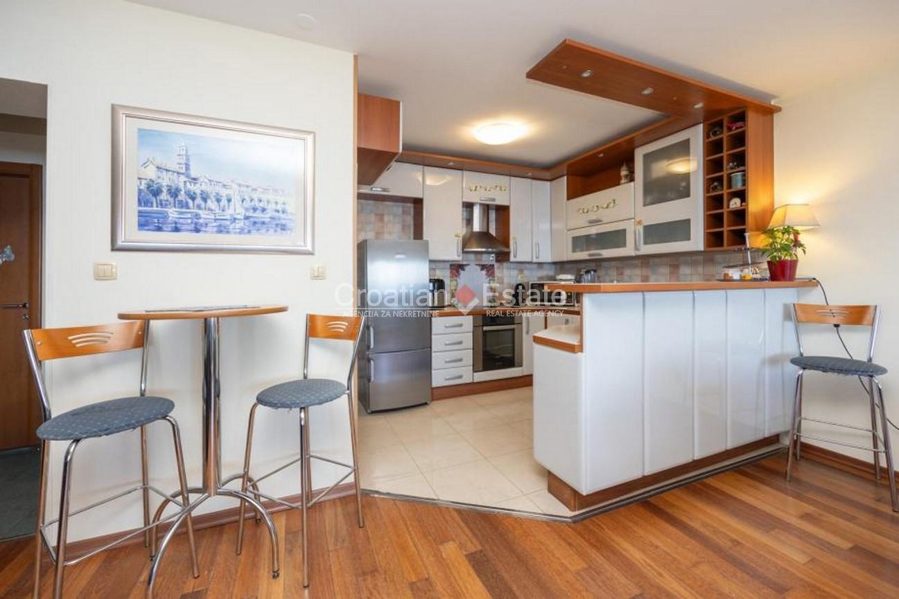 We are selling a three-bedroom flat with a living area of 126m2, located on the fifth floor of a building with a lift, in one of the most attractive locations in the Znjan neighbourhood, near a beach, in the city of Split. Its open-plan living and dining room creates a feeling of brightness, airiness, and connection with the surroundings, while its southern loggia offers an unforgettable view of the sea and islands – a perfect place for a morning coffee or an evening unwinding.